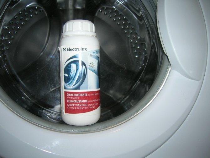 - Un agent de nettoyage spécial est versé dans le bac. Comme alternative, l'acide citrique à raison de 2 cuillères à soupe convient.