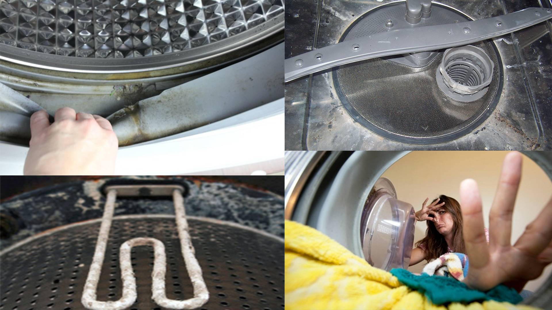 Le tartre sur le radiateur électrique tubulaire en combinaison avec des particules de vêtements adhérentes contribue à la croissance de moisissures, elles peuvent pourrir. La moisissure se produit en raison du manque de ventilation normale à l'intérieur, la trappe ne doit pas être fermée - la machine doit être ventilée.