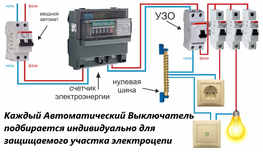 Une attitude négligente envers le choix d'un appareil avec les paramètres nécessaires entraîne de graves conséquences négatives. Par conséquent, avant de choisir un dispositif de protection automatique, il est impératif de s'assurer que le câblage installé peut supporter la charge prévue. Conformément au PUE, le disjoncteur doit fournir une protection contre les surcharges pour la section la plus faible du circuit. Son courant nominal doit correspondre au courant de l'appareil connecté. En conséquence, les conducteurs sont sélectionnés avec la section requise.
