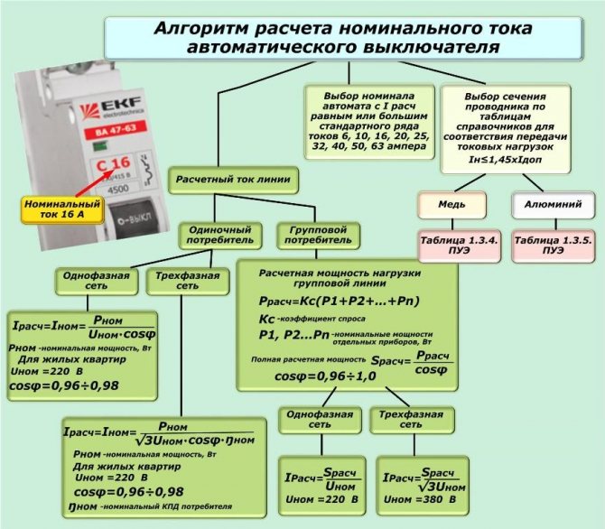 Après avoir trouvé le courant, sélectionnez la valeur. Elle peut être un peu plus ou un peu moins que la valeur trouvée. L'essentiel est que son courant de déclenchement ne dépasse pas le courant maximal autorisé pour ce câblage.