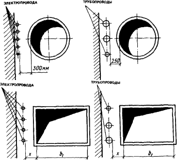 • la distance entre les conduits d'air ronds et les communications (alimentation en eau, ventilation, conduites de gaz), ainsi qu'entre deux conduits d'air ronds ne doit pas être inférieure à 0,25 m