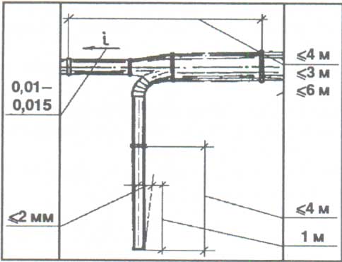 De plus, il est permis d'installer des canalisations avec une pente de 0,01 à 0,015 vers les dispositifs de drainage, si le fluide transporté est sujet à la condensation.