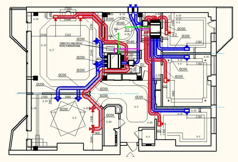 Le schéma du système de ventilation est développé lors de la conception du bâtiment. Les ingénieurs et les concepteurs tiennent compte des spécificités de la structure, des caractéristiques architecturales, de la différence de régime climatique dans les locaux.