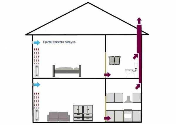 Le principe de base de l'élaboration d'un schéma de ventilation naturelle dans une maison privée pendant le processus de construction est l'emplacement des mines. Ils sont disposés exclusivement dans des cloisons internes pour garantir le maintien au chaud de la partie principale du tuyau. Ce principe permet d'obtenir une puissance d'extraction suffisante, notamment à des températures d'air extérieur négatives.