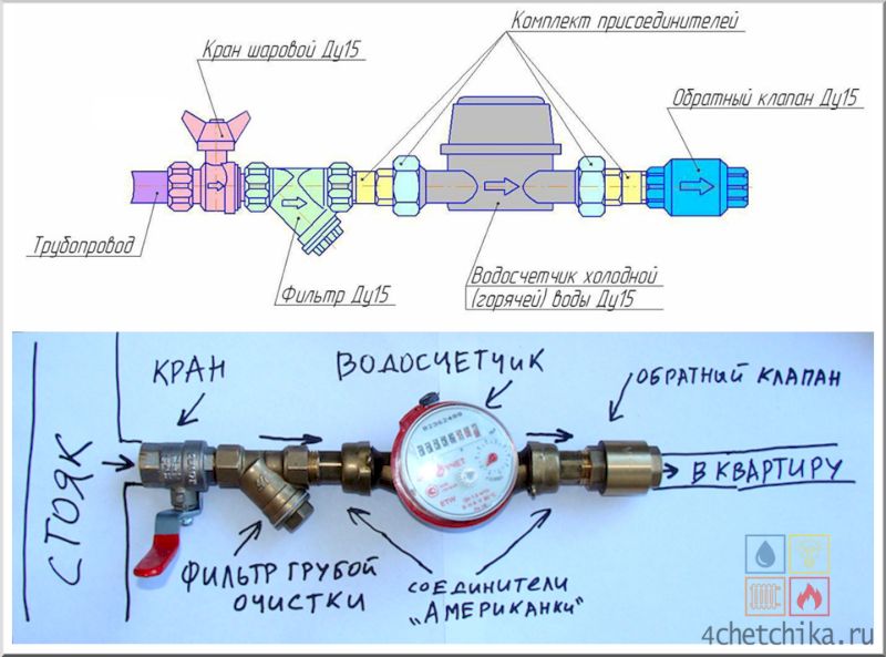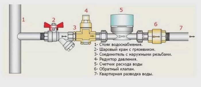 Dans les ménages privés, le processus d'auto-installation d'un compteur d'eau est grandement simplifié. Donc, pour l'installation, vous avez besoin de: