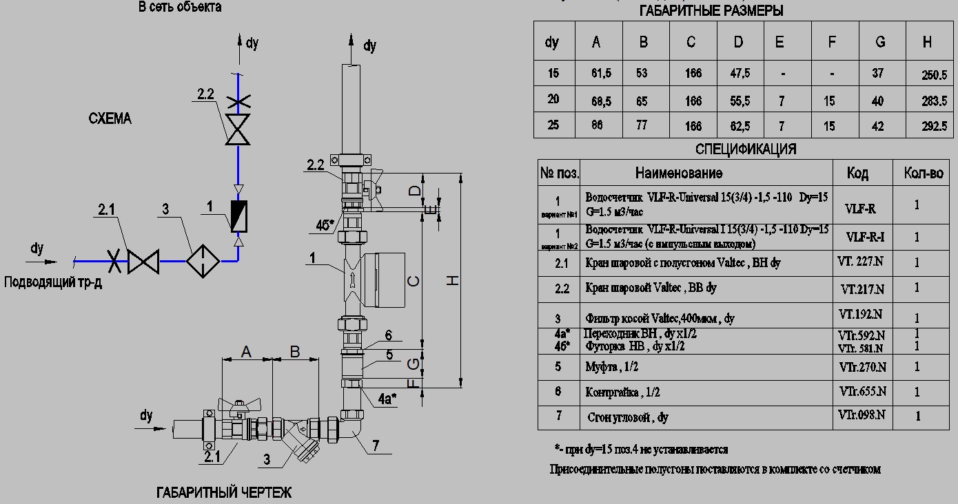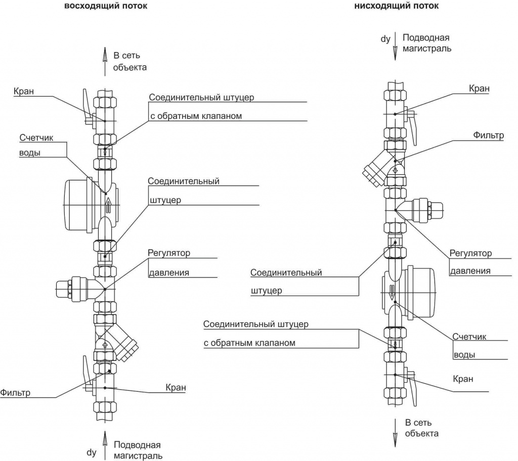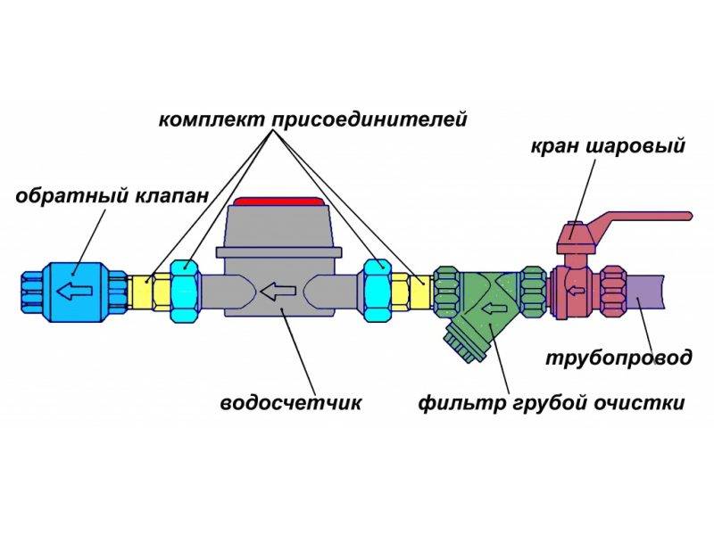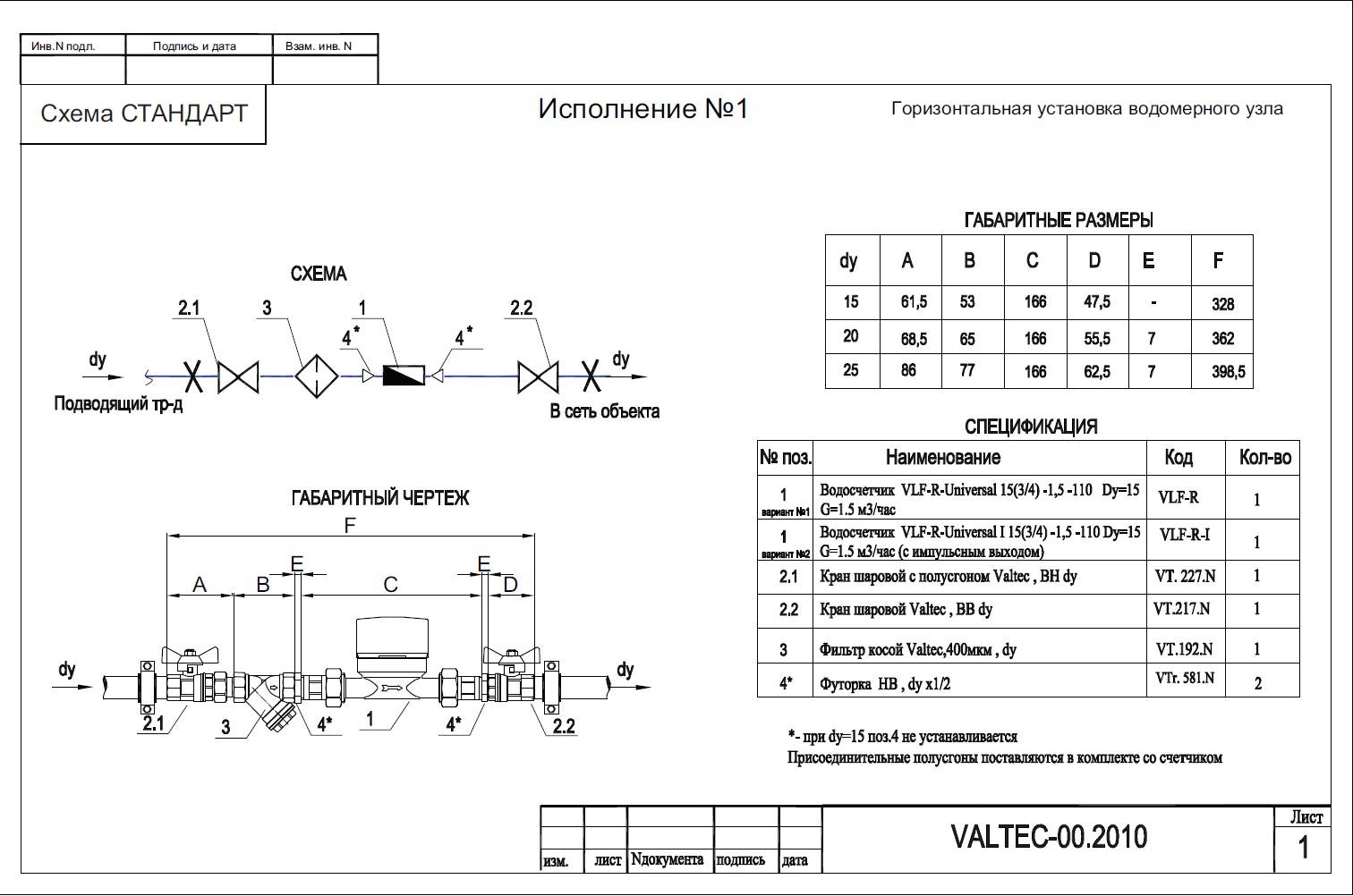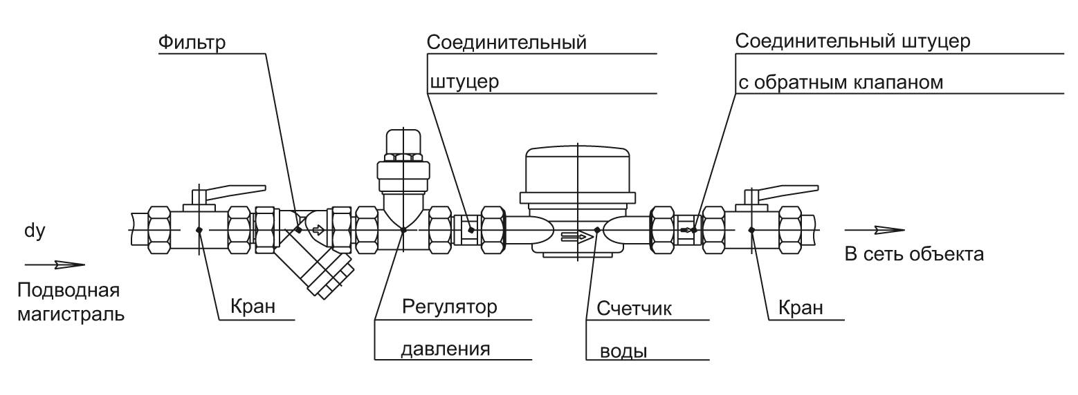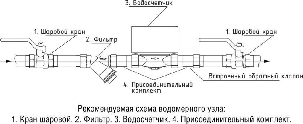 Il incombe au spécialiste de vérifier l'exactitude de l'ordre d'installation de l'ensemble du compteur d'eau et de tous ses composants, et l'intégrité des éléments d'assemblage est également vérifiée.