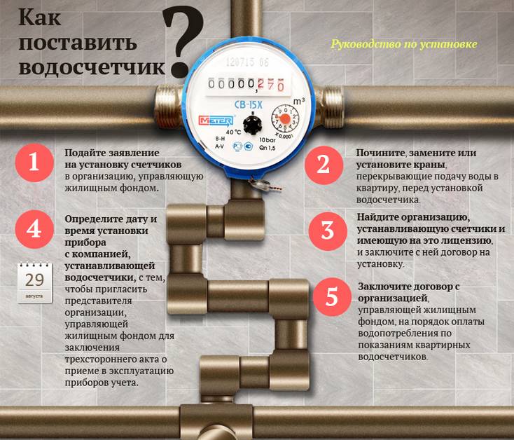 La séquence d'actions pour l'auto-installation d'un compteur d'eau dans un appartement et une maison privée est très différente.