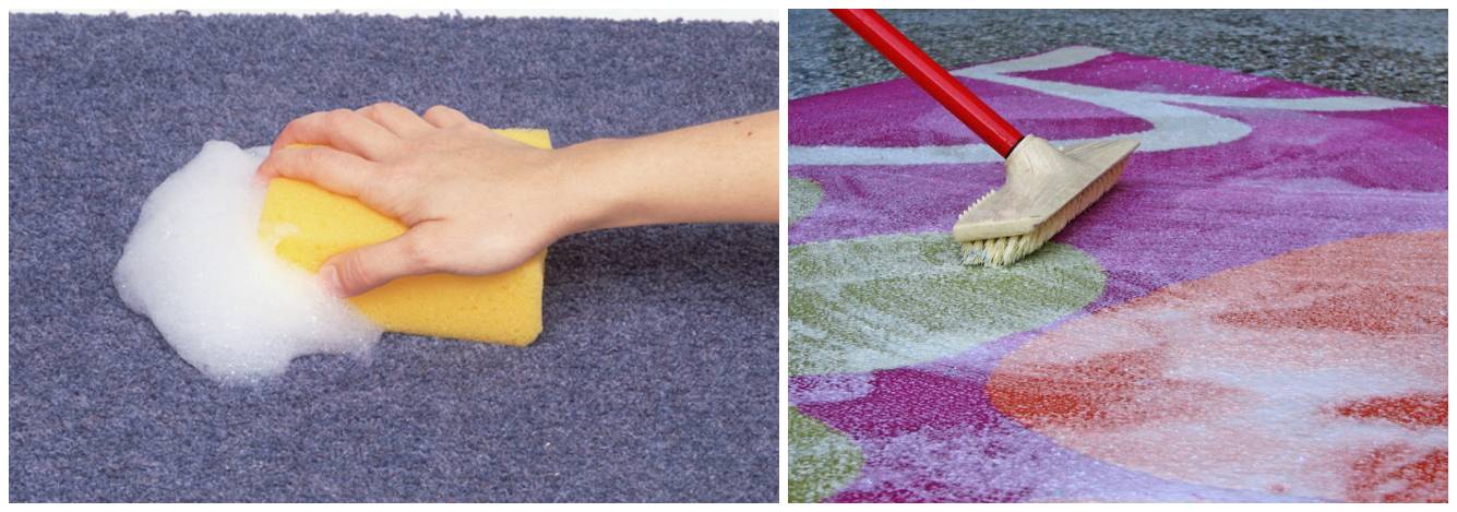 Si le traitement à sec n'a pas aidé, vous pouvez laver le tapis directement à la maison. Comme il est très difficile de sécher le matériau dense sur le sol, beaucoup d'eau ne peut pas être utilisée. Il est plus facile de traiter le produit avec des produits chimiques ménagers. Par exemple, Disparition. Mais vous pouvez fabriquer votre propre nettoyant.