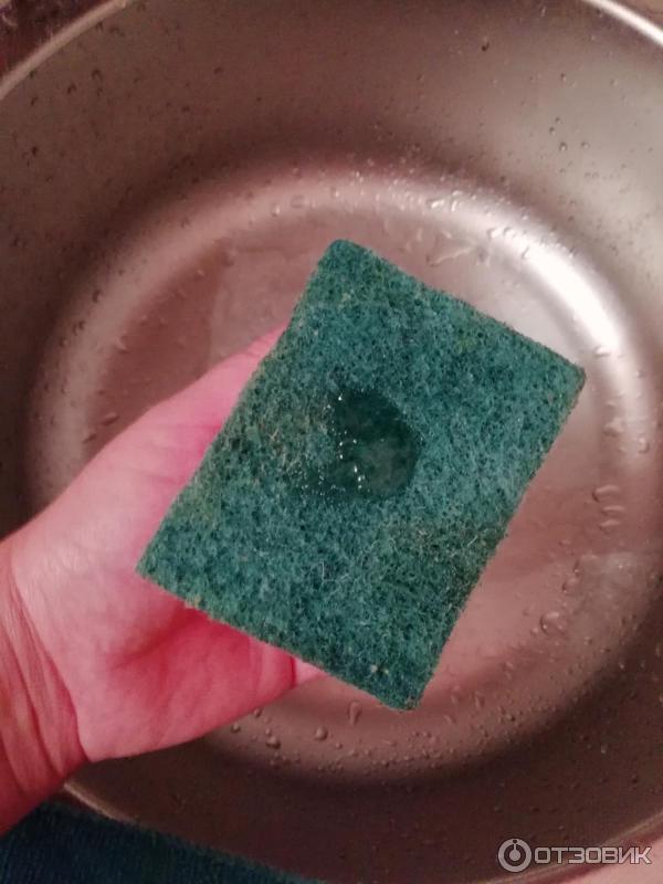 Les éponges sont l'article de cuisine le plus pratique pour laver la vaisselle. En raison de sa structure interne, l'éponge absorbe bien l'humidité et le chiffon abrasif sur l'un de ses côtés lave en profondeur les endroits difficiles à obstruer dans la vaisselle. Le matériau lui-même est du caoutchouc mousse, a une bonne élasticité et, malgré son état, l'éponge, jusqu'au dernier jour d'utilisation, conserve son apparence et tient confortablement dans la main.