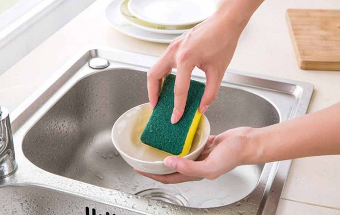 Une éponge en polypropylène semble être idéale - elle fouette une mousse luxuriante, ne raye pas les assiettes et les tasses (contrairement aux brosses dures) et lave bien la saleté. Mais elle a deux énormes inconvénients, qui annulent complètement tous les avantages :