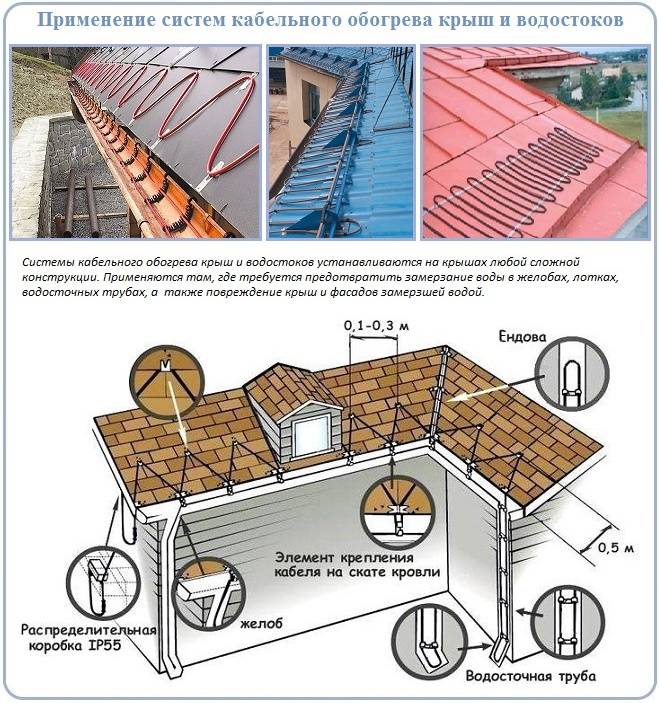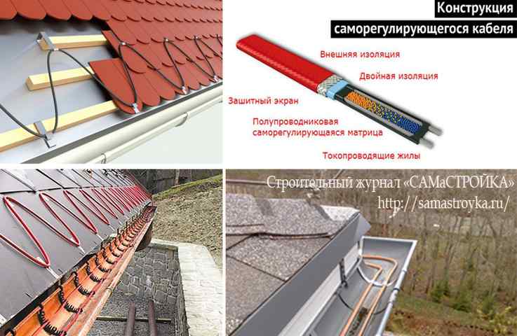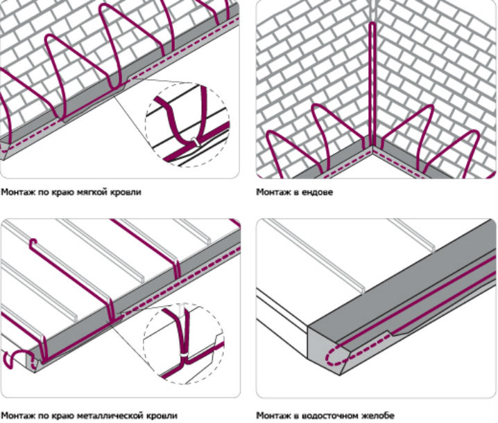 Mais le fil peut rentrer à l'intérieur. Ceci est généralement utilisé lors de l'installation d'un système de chauffage pour les toits plats, ainsi que lors de la construction d'immeubles de grande hauteur. Pour le chauffage gouttières et tuyaux seul le câble est utilisé.
