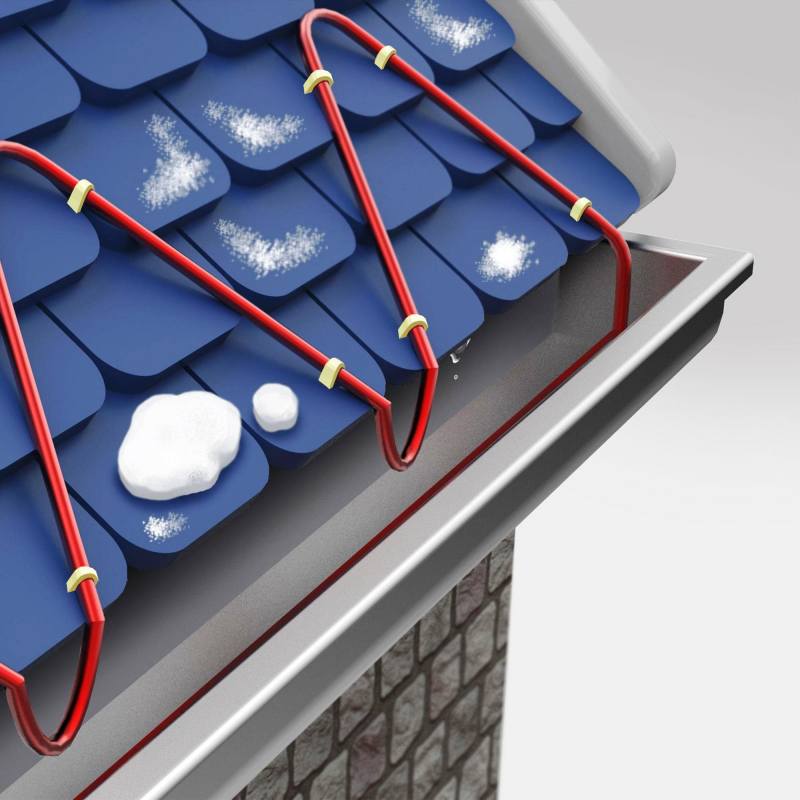 Conseil de pro : Le système de câble chauffant le plus économique est considéré comme le plus rentable. Des câbles de résistance généralement peu coûteux sont utilisés dans la partie toit du système, tandis que le chauffage des gouttières et des gouttières est assuré par des câbles autorégulants.