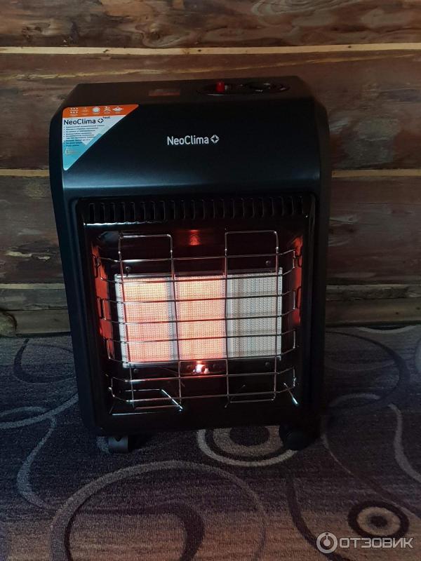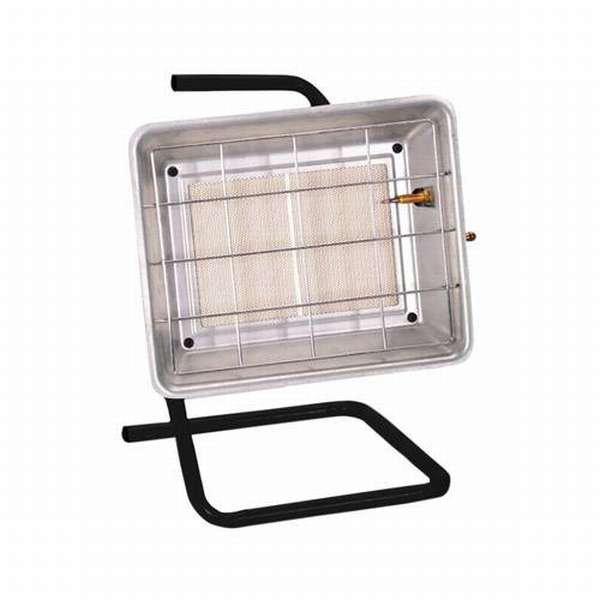 N'a pas besoin d'électricité. Fonctionne au gaz liquéfié. Il peut chauffer une surface de 30 à 60 m2. À l'intérieur du boîtier se trouve une bouteille de gaz. Dans la chambre de mélange, le gaz est mélangé à l'air. Ce mélange passe à travers les trous des plaques de céramique et brûle. Les plaques chauffent jusqu'à 900°C et émettent une chaleur infrarouge.