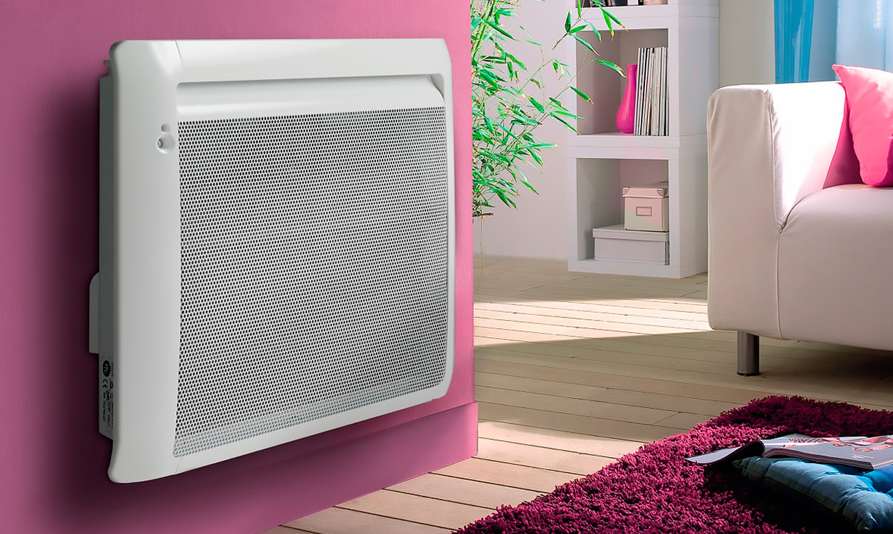 Le convecteur est un appareil de chauffage au design léger et élégant. Monté, en règle générale, sur le mur, moins souvent - au plafond. Cela se fait très simplement: d'abord, un cadre de montage est installé sur le mur avec des boulons, puis un convecteur y est posé. Le principe de fonctionnement du convecteur est simple. L'air froid entre par les ouvertures inférieures du convecteur dans le boîtier.Là, il traverse les parties chauffées de l'élément chauffant électrique. L'air chauffé sort par les ouvertures supérieures de l'appareil. Le thermostat aide à ajuster les paramètres de température souhaités.