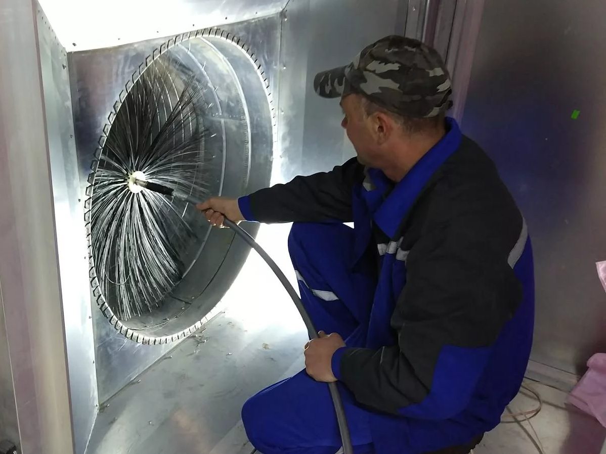 Lors de la deuxième étape de l'événement, des travaux de nettoyage sont directement effectués, dont le déroulement dépend de la méthode de nettoyage choisie. Lors du nettoyage mécanique des canaux verticaux d'un immeuble résidentiel, des spécialistes font passer un câble avec un poids et une brosse spéciale dans le puits, ce qui élimine efficacement les dépôts et les gros blocages des parois du conduit d'air. Avant de connecter un équipement spécial, les travailleurs ferment les vannes, les entrées et les sorties du système de ventilation.