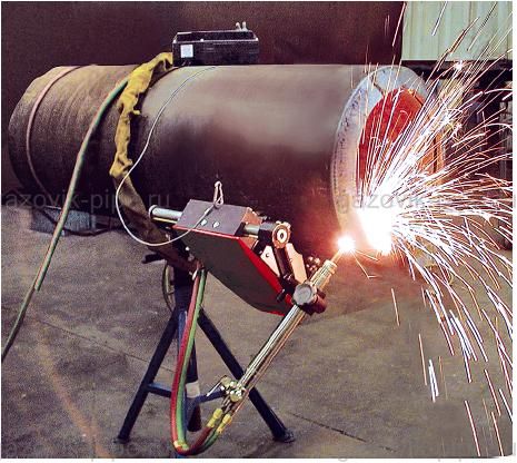 De plus, un cutter est utilisé. L'inconvénient d'une telle machine est le plus grand bruit pendant le fonctionnement par rapport à l'homologue au propane. Dans les ateliers à domicile, les coupe-tubes et le soudage électrique sont généralement utilisés pour la coupe.