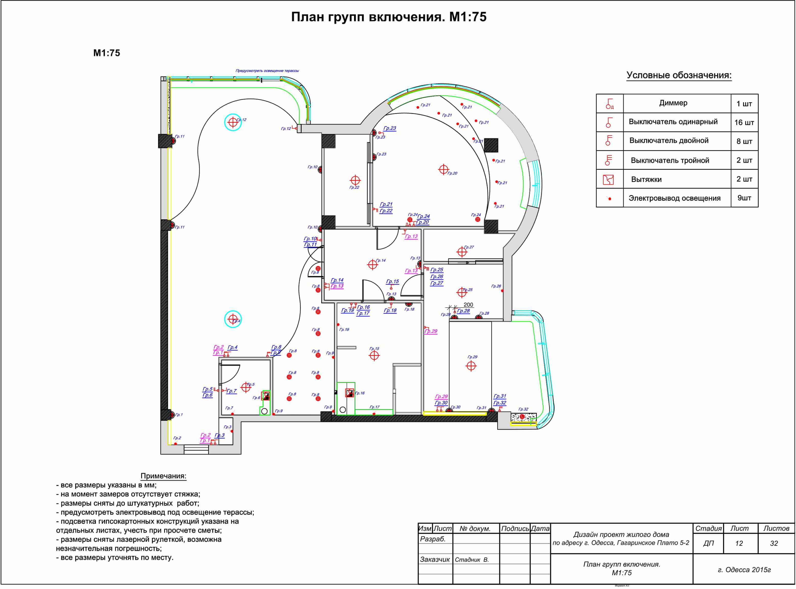 Ce plan sera utilisé non seulement par la personne qui l'a compilé, mais également par les installateurs, puis par les électriciens réparant le câblage électrique. Par conséquent, les images conditionnelles des prises et des interrupteurs dans les dessins doivent être compréhensibles par tous et conformes à GOST.