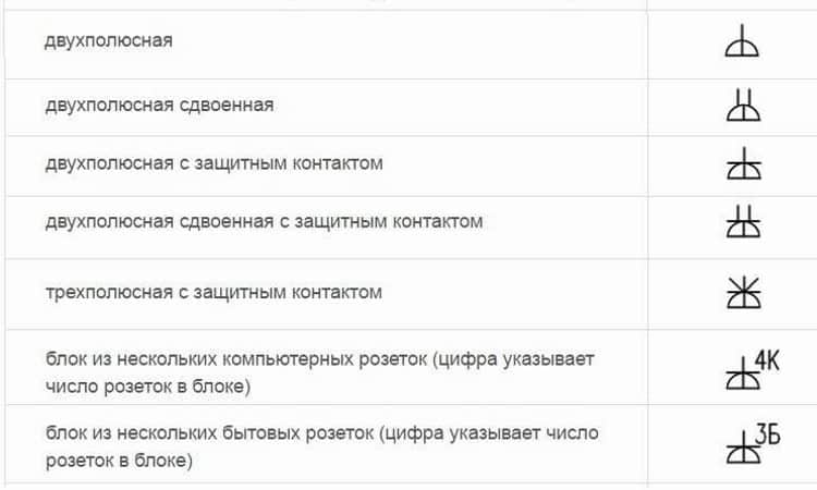 Le système de notation est universel, ce qui garantit l'interaction entre les clients, les concepteurs, les fabricants et les installateurs. Mais vous devez utiliser les images graphiques avec beaucoup de prudence, car chaque élément du signe compte. Il est conseillé de montrer chaque croquis à un spécialiste afin qu'il sélectionne correctement les appareils électriques nécessaires.