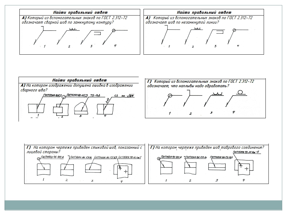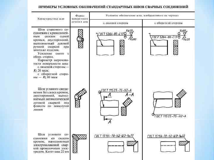 - Image symbolique des soudures dans les dessins conformément à GOST 2.312-72 "Images conditionnelles et désignations des joints soudés"