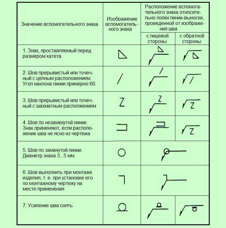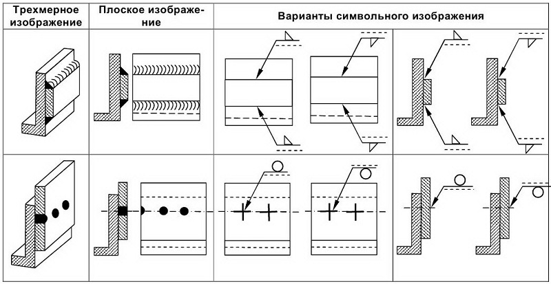 Image symbolique des soudures dans les dessins conformément à GOST 2.312-72 "Images conditionnelles et désignations des joints soudés"