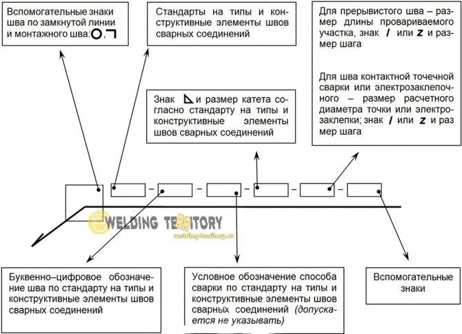 2.2. La structure du symbole d'un joint standard ou d'un seul point de soudure est illustrée dans le schéma (Fig. 5).