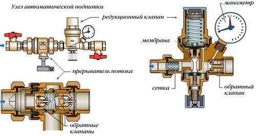 4. Dans le système de chauffage, la vanne est installée dans la section à travers laquelle le liquide de refroidissement s'écoule de l'appareil de chauffage vers l'appareil de chauffage, s'il existe une possibilité de chute de pression dans cette zone. Cela aidera à empêcher le reflux d'eau de la canalisation lorsque la pression dans le réseau externe chute. Dans ce cas, sur la section de retour, il est nécessaire d'installer un détendeur fonctionnant sur le principe du "à lui-même".