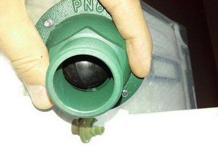 Une vanne à manchon est installée si un clapet anti-retour est installé sur des tuyaux de petit diamètre (jusqu'à 2,5 pouces). Avec un diamètre de tuyau de 40 à 600 mm, un clapet anti-retour à bride est installé.