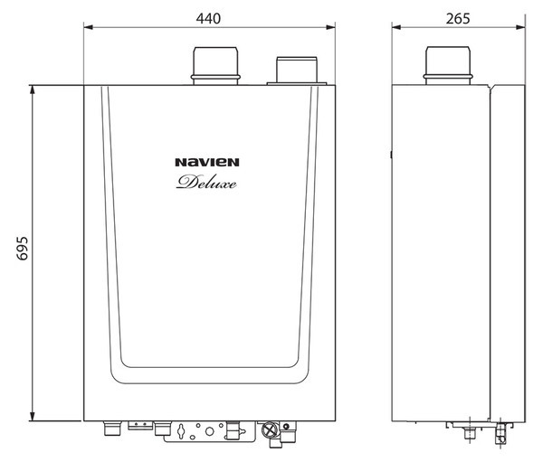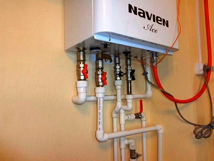 - soumis à une faible pression d'entrée dans le système de canalisation de gaz - un fonctionnement stable et sûr de la chaudière à gaz Navien Ace est possible à une pression de gaz de quatre mbar (40 millimètres de colonne d'eau);
