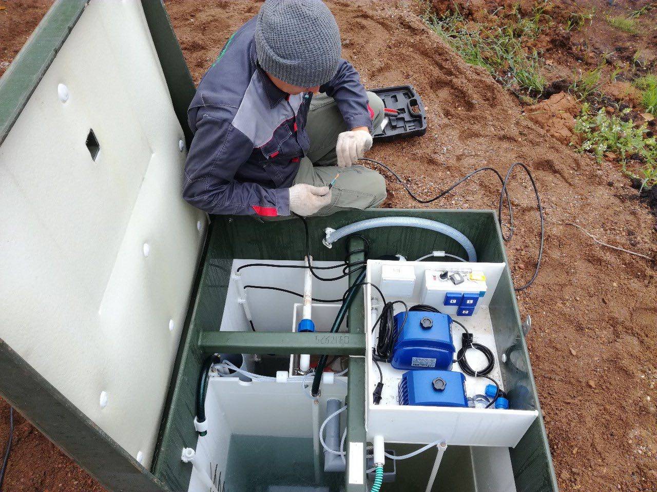 Les stations d'épuration fonctionnent automatiquement et ne nécessitent pas d'entretien quotidien. Pendant le fonctionnement, les eaux usées ménagères entrant dans la chambre de réception sont transformées de manière aérobie en boues et en eau techniquement pure, qui sont ensuite évacuées par les tuyaux de sortie dans le sol, un réservoir spécial, un fossé de drainage ou un drainage. A la sortie, le liquide oxydé par les boues activées doit être transparent, sans turbidité, sédiment et odeur.