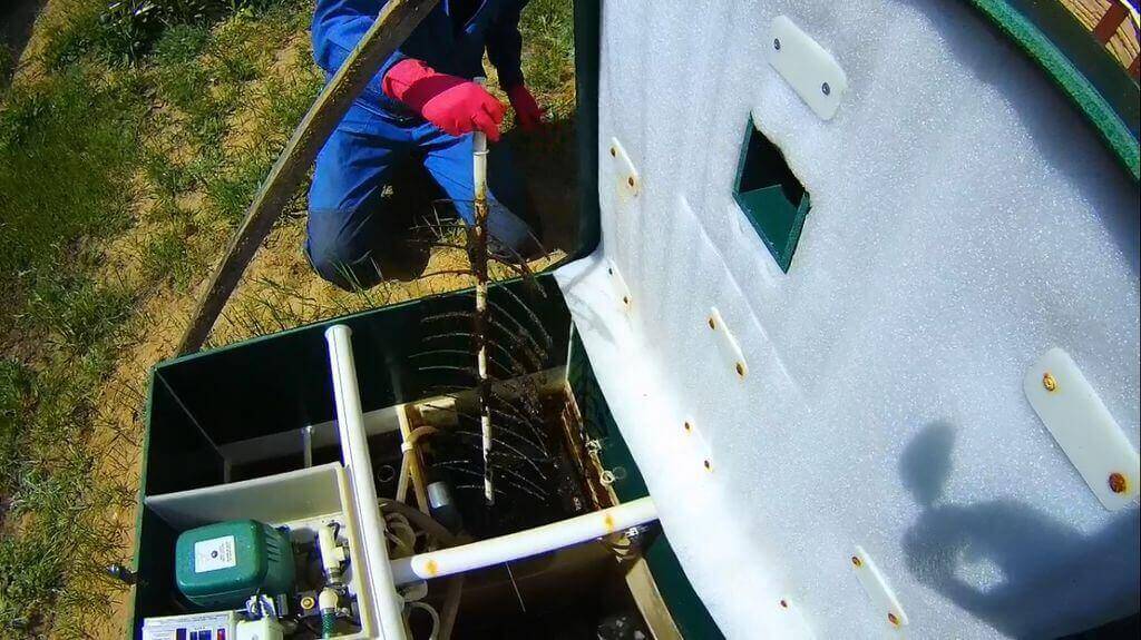 Une fois par trimestre, il faut débourber, vérifier le filtre grossier et procéder à l'évacuation des déchets non recyclés. Il est impossible de permettre l'élimination complète des boues des chambres de la fosse septique, car un traitement biologique se produit avec son utilisation. Pour éviter la formation d'une couche dense de limon au fond de la boue, celle-ci doit être régulièrement pompée à l'aide d'un pont aérien.