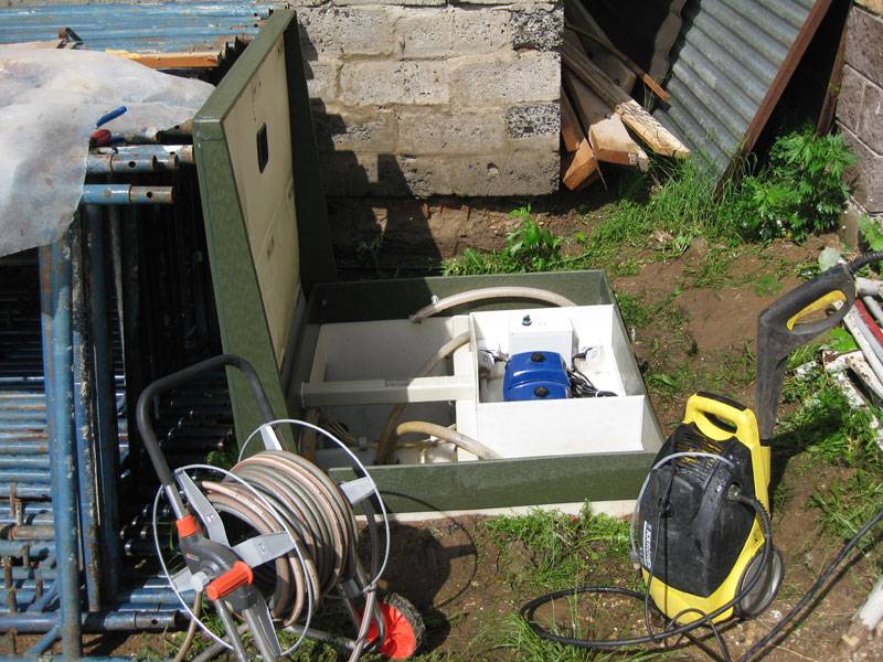 Nous abaissons la pompe avec un tuyau au fond de la chambre de stabilisation des boues, abaissons l'extrémité du tuyau dans un récipient préalablement préparé pour collecter les boues ou directement dans la fosse à compost. Nous allumons la pompe et pompons environ 50% du volume (environ 1 mètre de colonne de liquide).Nous lavons les parois du stabilisateur de boues des précipitations et le remplissons d'eau propre jusqu'au niveau d'origine.