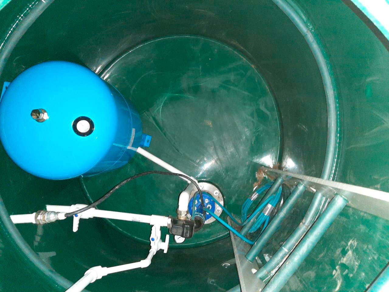 Le réservoir de stockage lui-même a une membrane en caoutchouc et des relais qui régulent la pression de l'eau à l'intérieur du réservoir. Si le réservoir est plein, la pompe est éteinte, au moment où l'eau commence à être consommée, le relais envoie un signal à la pompe pour qu'elle s'allume et elle commence à pomper l'eau du puits.