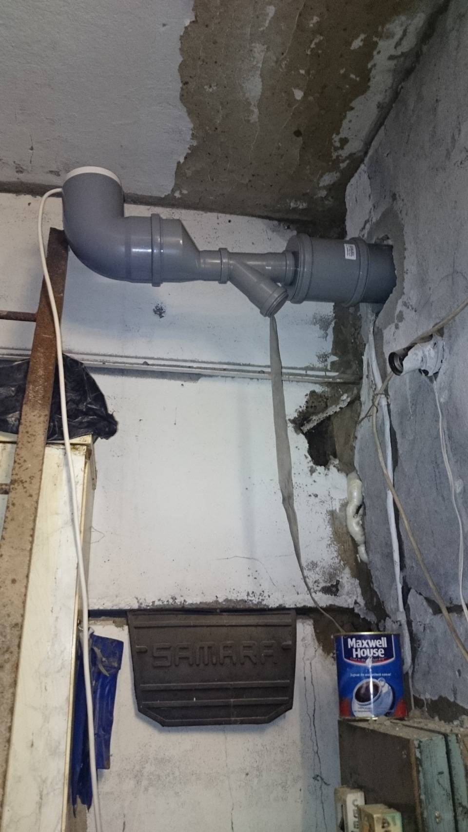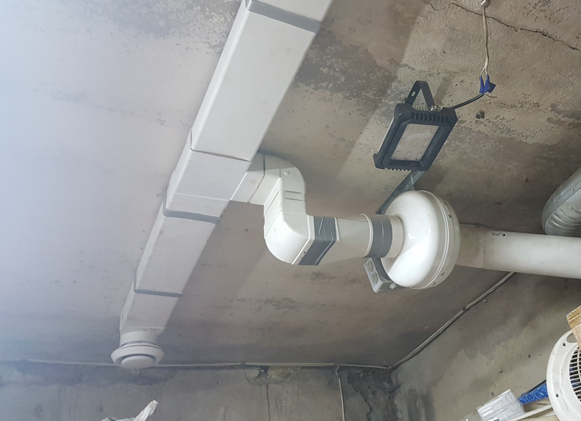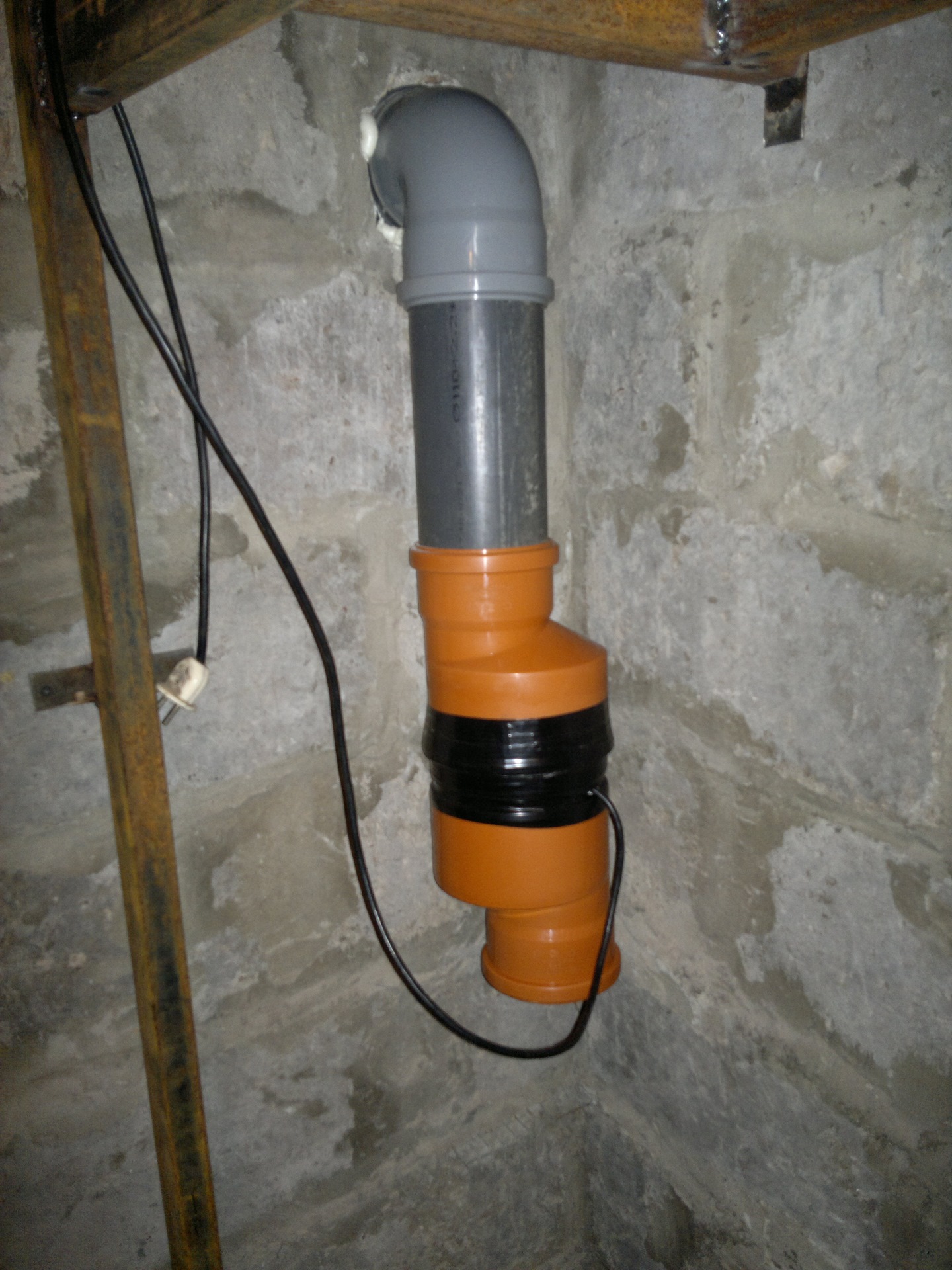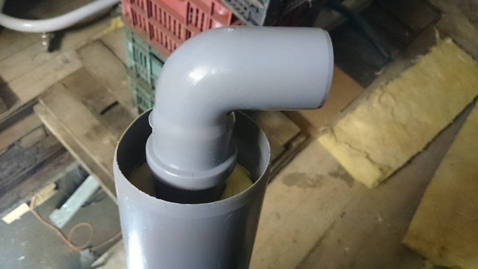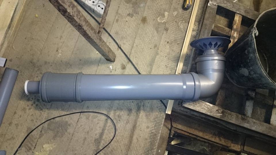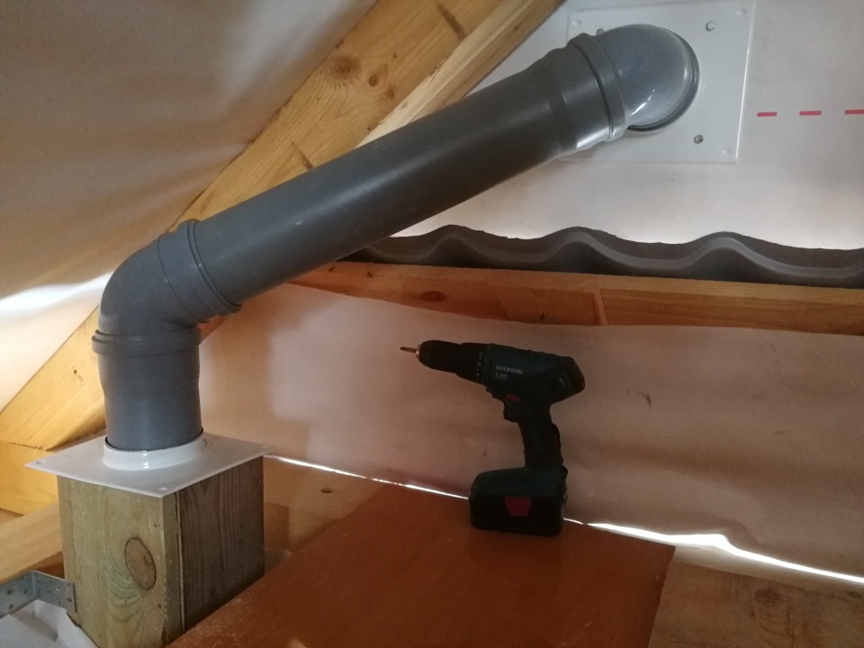 - Une colonne montante de ventilation est assemblée à partir de gros tuyaux.