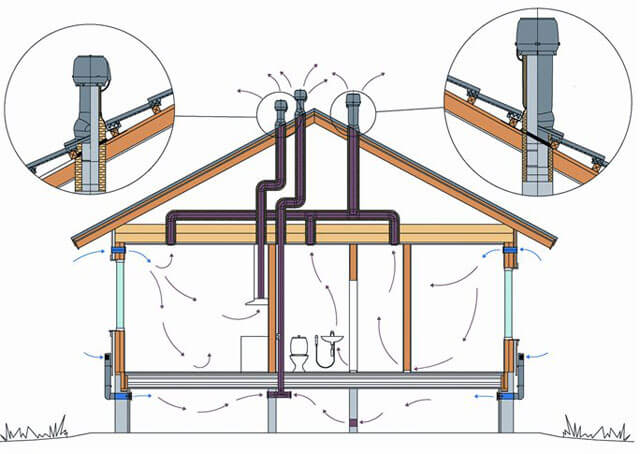 Lors de la conception, gardez à l'esprit que ce qui compte dans la ventilation, c'est sa fonctionnalité, avec la possibilité de tirer le meilleur parti de toutes les conditions de chaque pièce. Si vous faites une erreur, vous devrez utiliser des ventilateurs mécaniques, ce qui augmentera considérablement le coût du système.