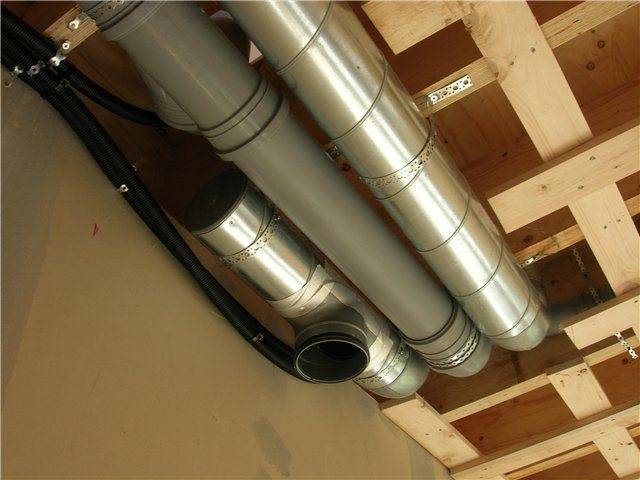 Puisque vous travaillez dans une maison privée, il est conseillé de cacher les conduits de ventilation dans les murs, sous les plafonds, etc. Malheureusement, ce n'est pas toujours possible. Parfois, la ventilation est mise en place une fois que tous les travaux de construction ont été achevés dans la maison. Dans ce cas, il n'y a qu'une seule issue - l'installation de plafonds suspendus et de murs en plaques de plâtre.