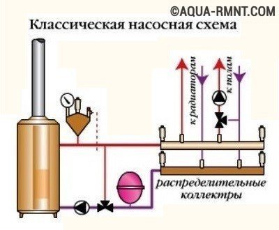 - Collectionneur. Pour son fonctionnement efficace, il est nécessaire de disposer d'un collecteur qui recueillera l'eau du système de chauffage et de la pompe de circulation.Vous avez également besoin d'une alimentation séparée pour chaque radiateur. Ce schéma est utilisé pour les immeubles de grande hauteur et s'il est nécessaire de chauffer plusieurs grandes pièces.