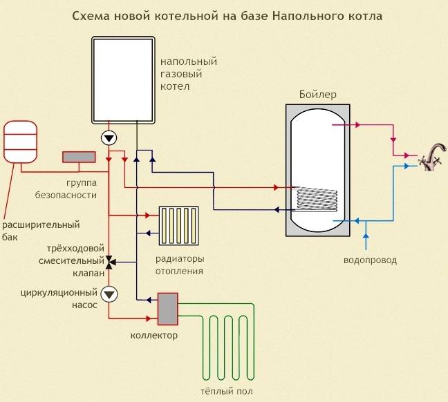 Une option idéale pour tous les locaux est un schéma dans lequel 3 circuits principaux peuvent être connectés: radiateurs, chauffage par le sol et chaudière.
