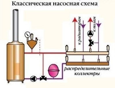 - Forcé. Il nécessite l'installation d'une pompe spéciale. Le cerclage est utilisé pour les pièces dans lesquelles un chauffage continu est effectué.
