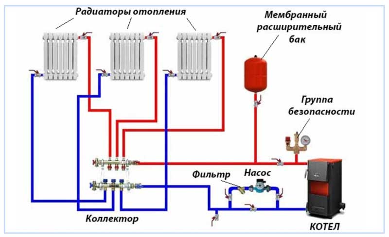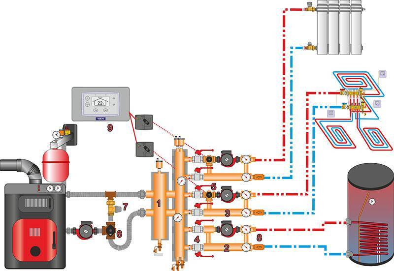 Pour le fonctionnement simultané de plusieurs circuits, il est nécessaire d'acheter et d'installer un collecteur qui assure une distribution uniforme du liquide de refroidissement.