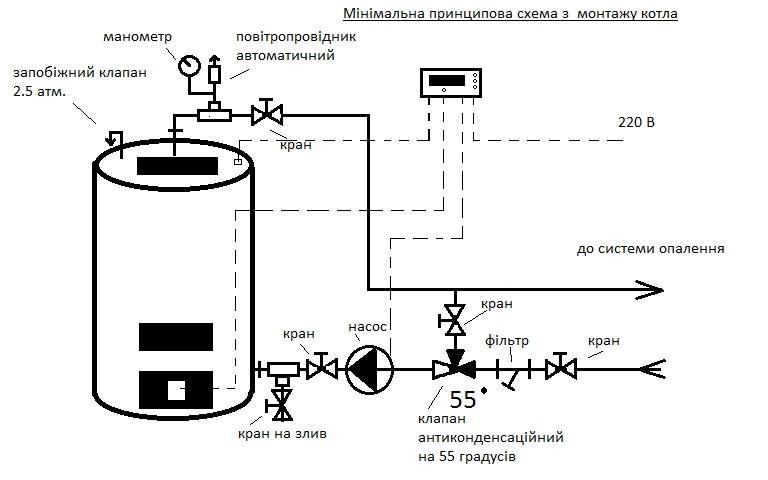 Une chaudière minière ou diesel est liée avec du polypropylène selon un schéma identique à celui d'un homologue à combustible solide. Le polymère doit en être retiré autant que possible.