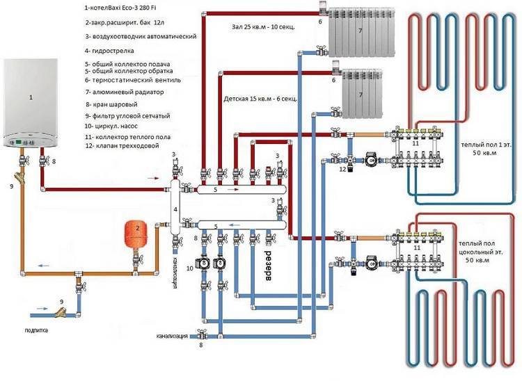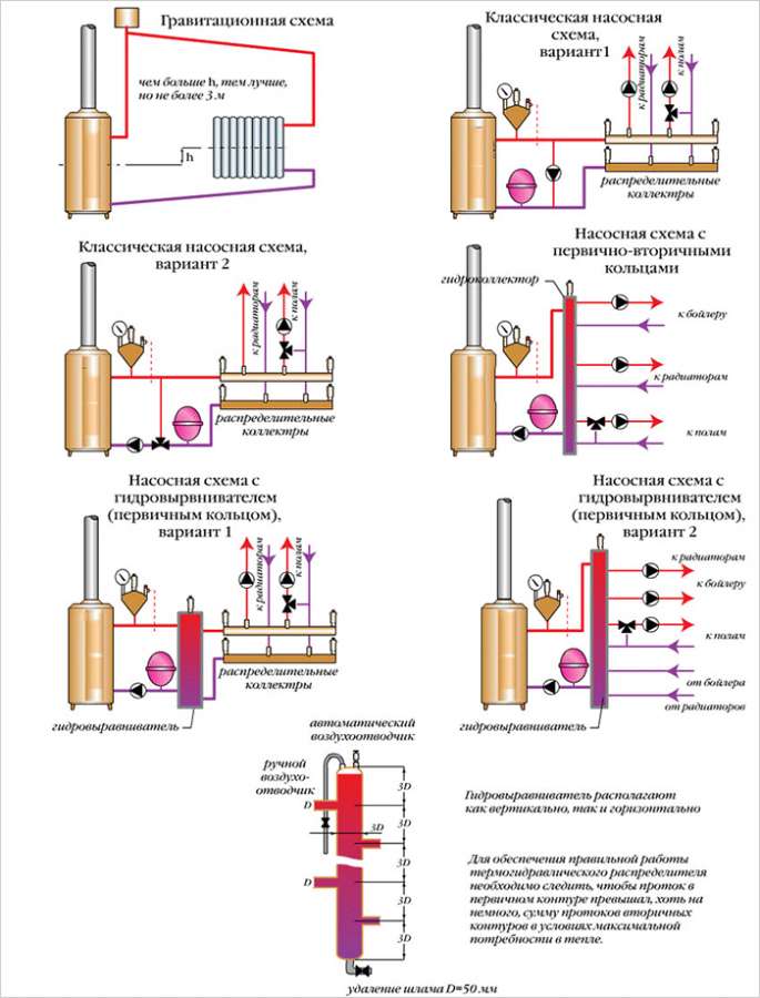 - Schémas de tuyauterie pour chaudières à gaz au sol