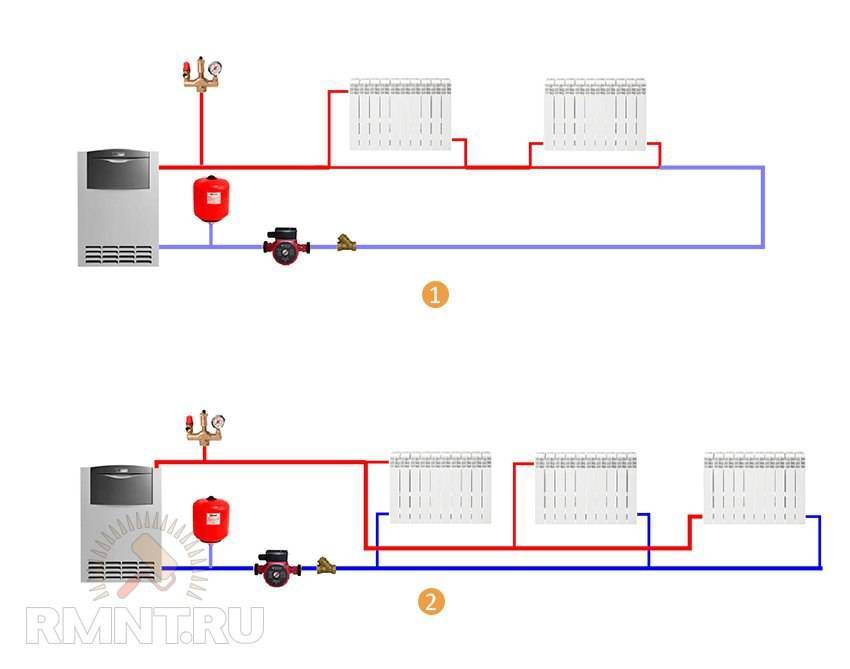 Les tuyaux fins sont bons car ils sont presque invisibles.Ils peuvent également être cachés dans les murs, les sols ou montés derrière les plafonds, réalisant un déguisement complet. Mais ils se distinguent par une résistance hydrodynamique élevée. De nombreuses connexions et ramifications ajoutent également des barrières. Par conséquent, il est impossible de compter sur le mouvement indépendant du liquide de refroidissement. Dans ce cas, les pompes de circulation sont incluses dans le circuit de tuyauterie de la chaudière de chauffage.