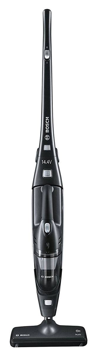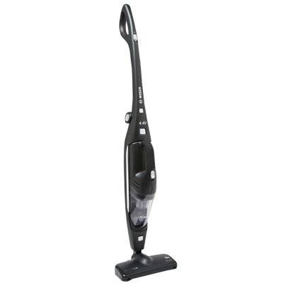 Le modèle d'aspirateur sans fil Bosch BBHMOVE2N a un design élégant et une riche couleur noire. Le corps de l'appareil contient : un collecteur de poussière, un dispositif d'aspiration, une batterie, des filtres et d'autres pièces.