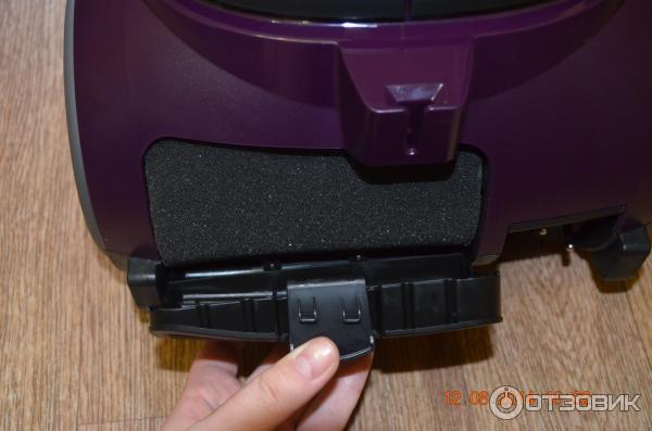 Il convient de noter la conception du conteneur de collecte des ordures, qui se retire facilement du corps. Sur sa face arrière se trouve un filtre de nettoyage. Il s'agit d'un système de filtration de 2ème degré, qui est principalement nécessaire pour protéger le moteur électrique des poussières fines.