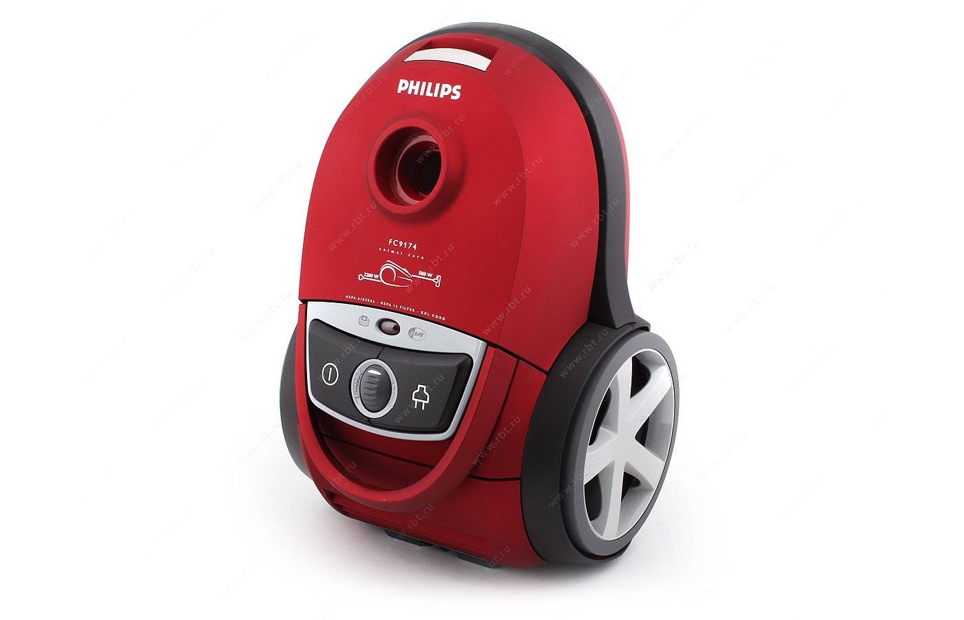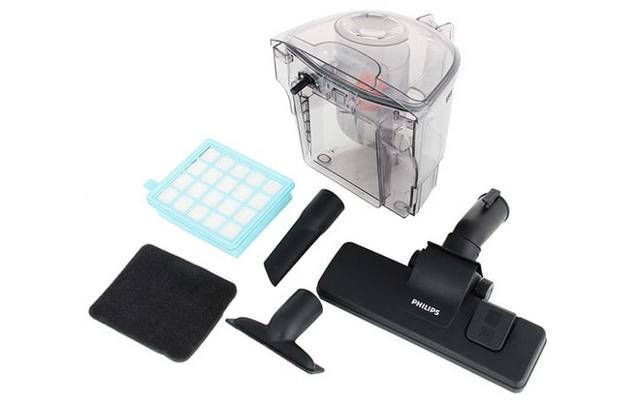 Dans ce cas, Philips s'est appuyé sur une combinaison de performances et de fonctionnalités. L'unité s'est avérée assez massive, il est donc difficile de l'attribuer à des créations réussies en termes d'ergonomie.Dans la version de base, le dépoussiéreur Philips FC 9174/01 est équipé d'une large gamme d'outils de nettoyage modernes. La base de cet ensemble est une brosse turbo, qui résiste avec succès à la poussière et aux cheveux. En fait, grâce à la grande capacité d'aspiration, il n'y a pratiquement aucun problème de qualité de nettoyage.