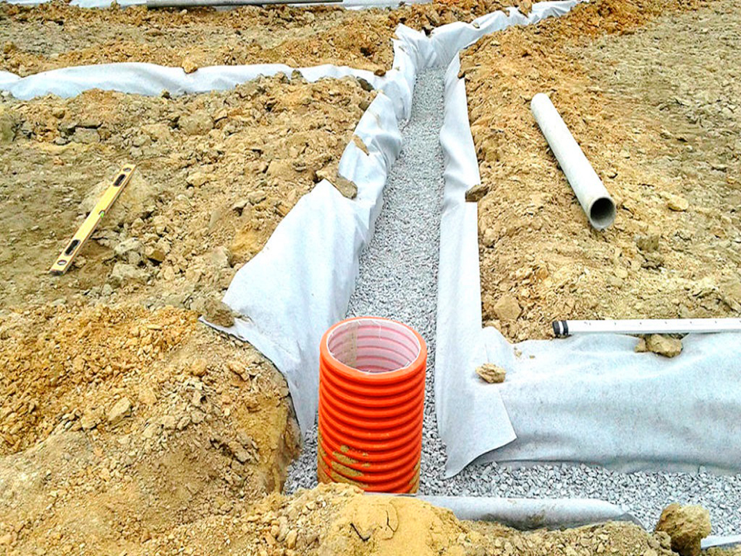 - Pose de tranchées sous la canalisation de drainage.