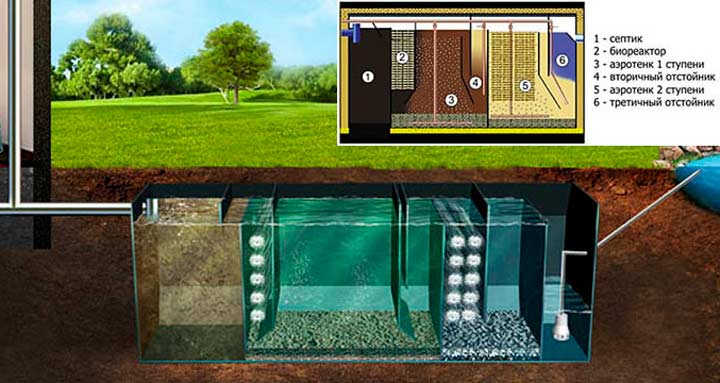 La station d'épuration est incluse dans le système d'assainissement autonome pour le traitement des eaux usées directement sur le lieu de leur formation