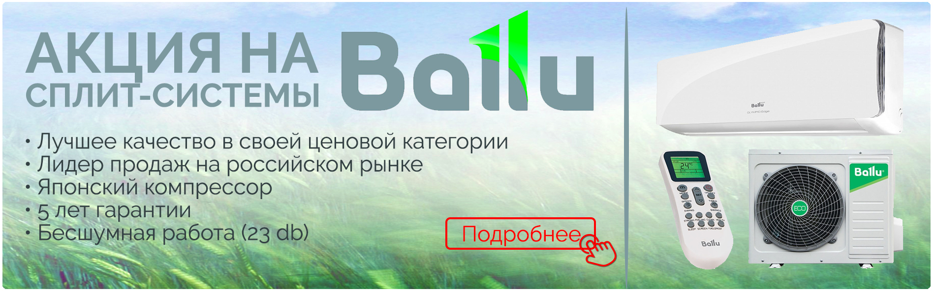Le système split DC-inverter mis à jour Ballu iGREEN PRO combine toutes les fonctions nécessaires pour créer un microclimat optimal et une utilisation pratique.