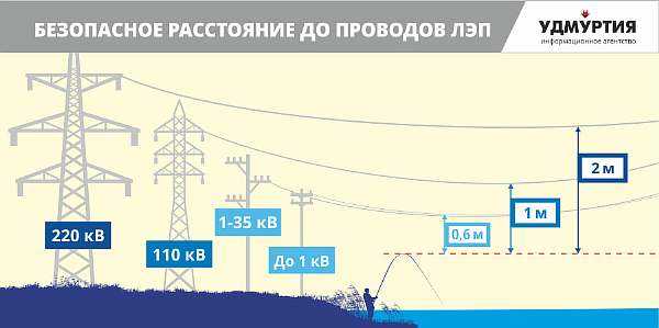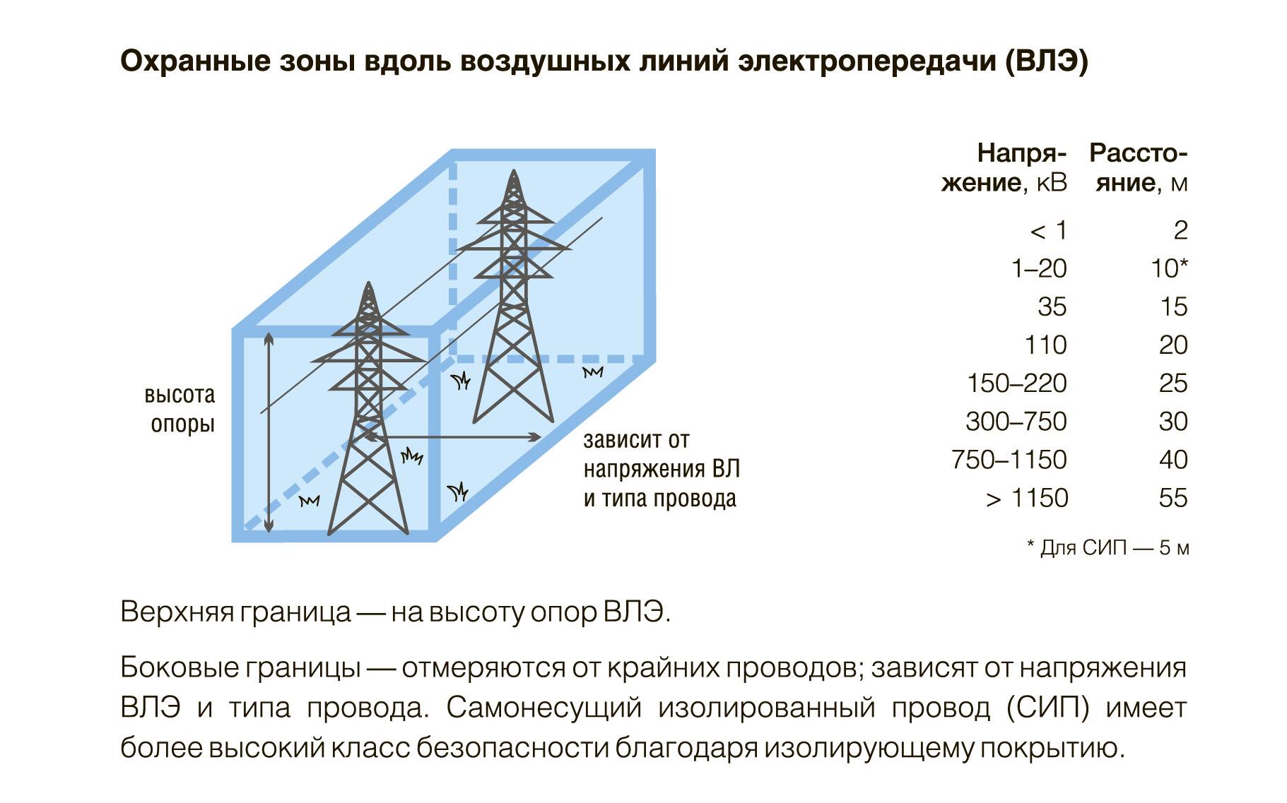 - Pour les lignes supérieures à 1 et jusqu'à 20 kW - la zone de sécurité sera de 5 mètres.