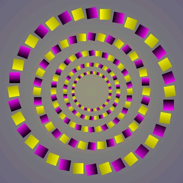 Ceci n'est pas un gif animé. C'est une image ordinaire, dont tous les éléments sont absolument immobiles. C'est votre perception qui joue avec vous. Maintenez votre regard pendant quelques secondes à un moment donné, et l'image s'arrêtera de bouger.